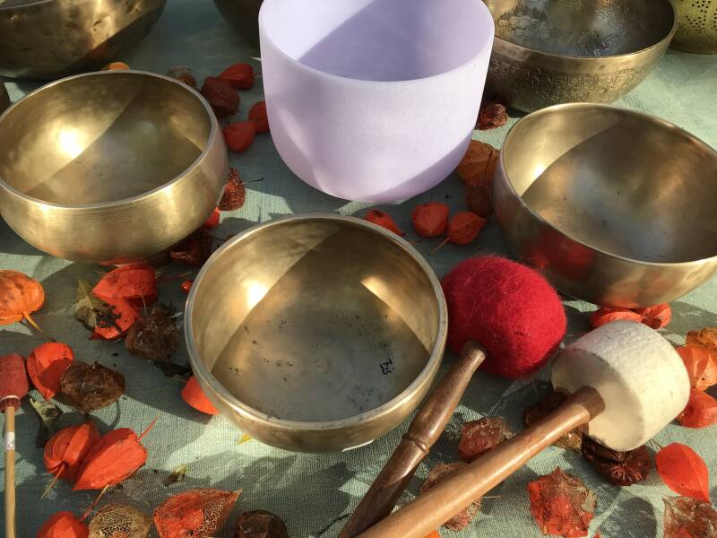 Tijdens de basale vorm van mijn klankschaal massage zet ik twee speciale klankschalen in.