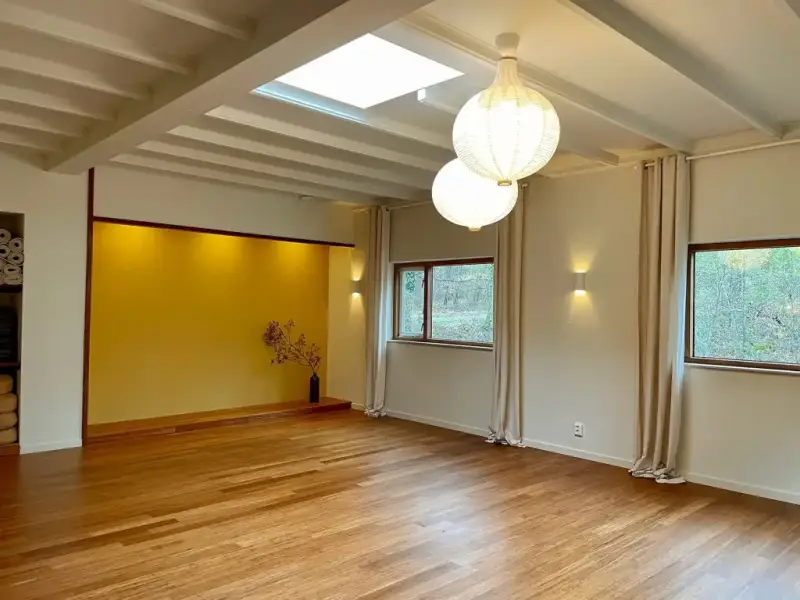 In de Zendo zijn yogamatten, hoofdkussen, dekens, mediatiekussens en meditatiebankjes aanwezig.
